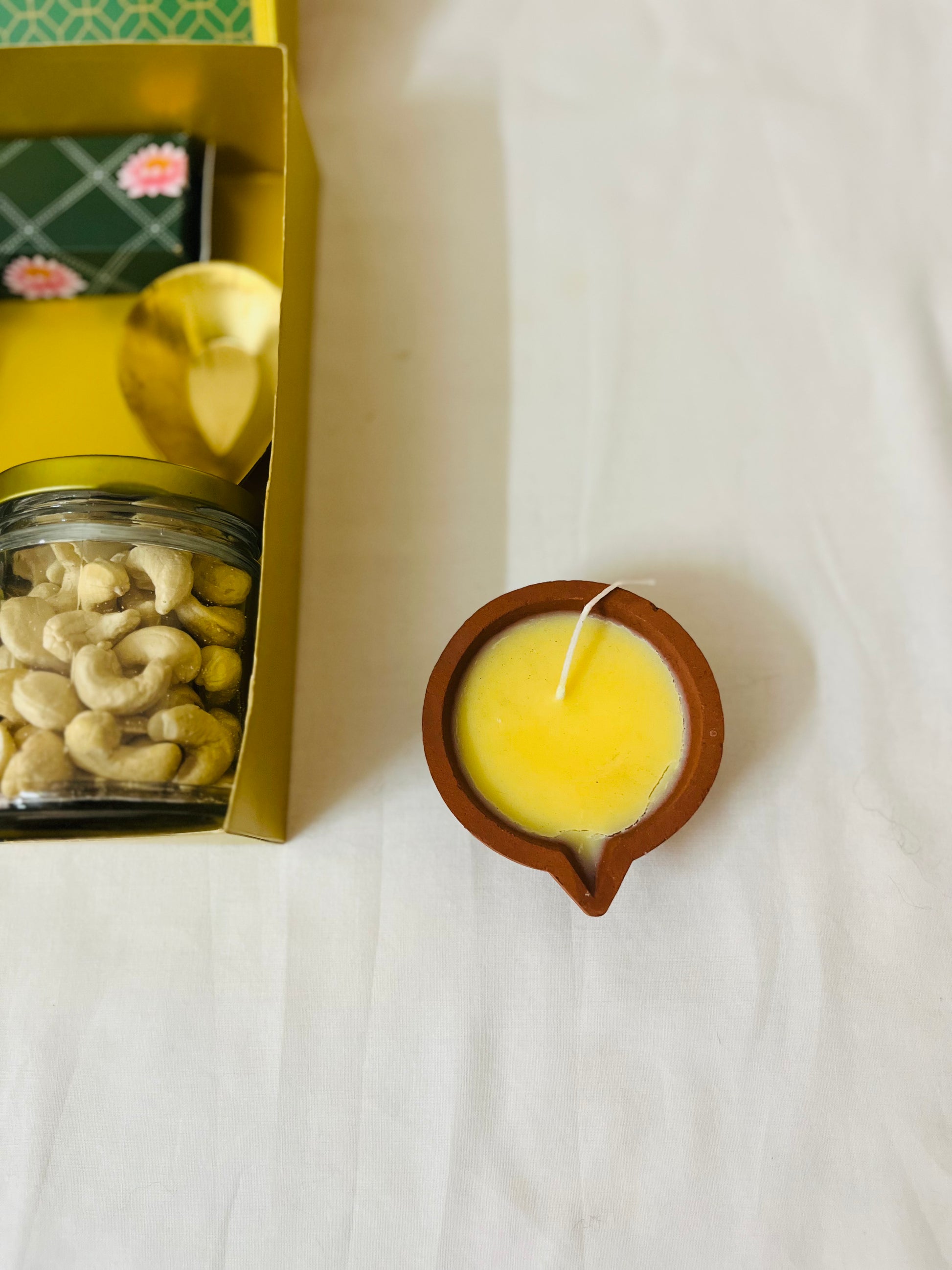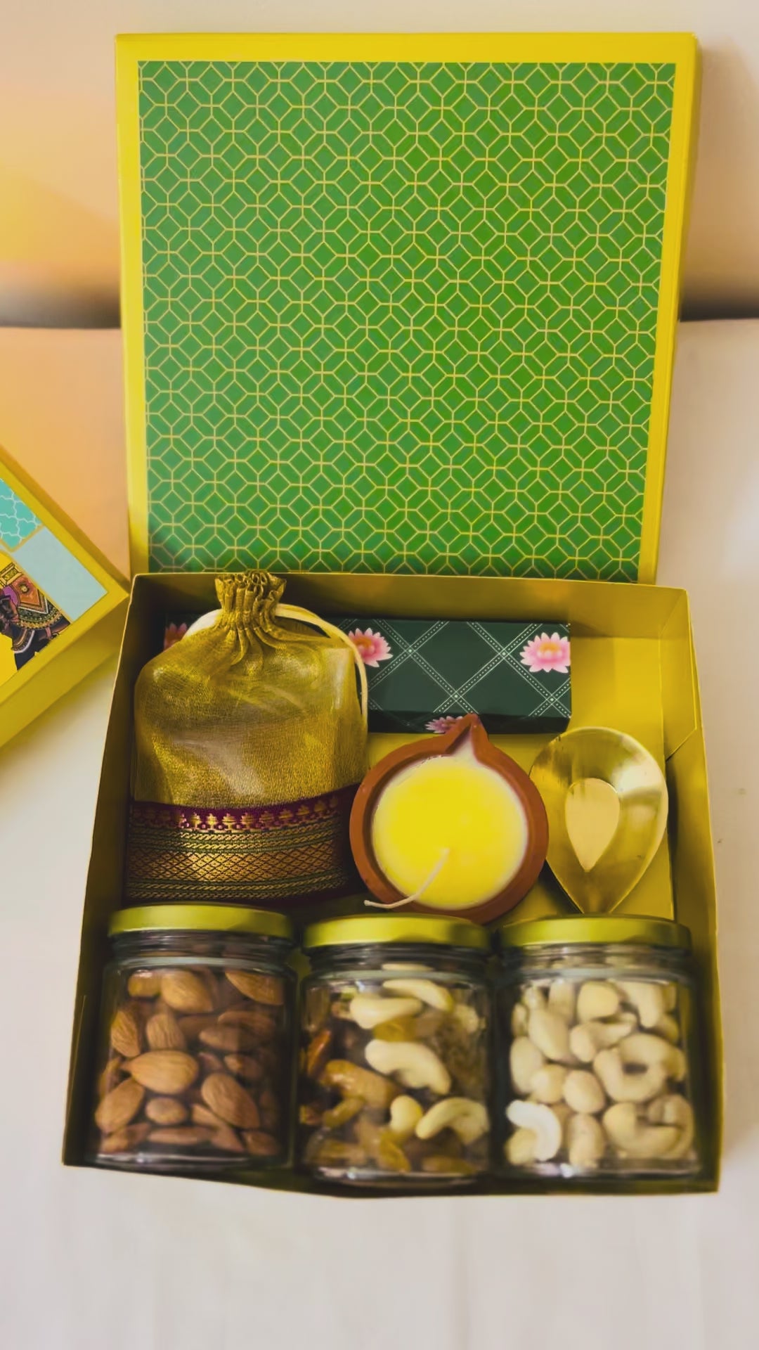 A luxurious handmade Diwali gift box curated to celebrate the Festival of Lights with style. Each box includes:
